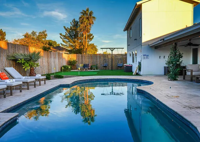 Die Villa bietet einen Essbereich im Freien mit Ausstattung zur Kaffee- & Teezubereitung. Es gibt auch eine Mikrowelle, eine Kaffee-/Teemaschine und einen Kühlschrank in der Küche. Diese Unterkunft liegt in 13 Fußminuten Entfernung vom Restaurant Mi Amigo's Mexican Grill und bietet Gerichte der mexikanischen Küche. Diese Villa ist auch vom 25 km entfernten Flughafen Phoenix-Mesa Gateway aus leicht erreichbar.